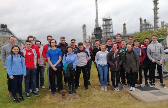 Half of the Chemical engineering 1st years with Dr Ann Toebes paid a visit to Irving Oil on Friday 5th May. John Ahern, a senior process engineer, delivered an overview of the operations at Irving Oil which include distillation, reforming, desulphurisation and water treatment. John outlined the role of the chemical engineer on the site and showed the relevance of the course modules in the workplace.