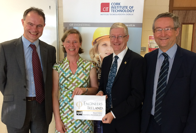 Dr. Michael J. O'Mahony, Head, Dept of Process, Energy & Transport Engineering, Dr. Sandra Lenihan, Course co-ordinator, Mr. Damien Owens, Registrar, Engineers Ireland, and Mr. Pat Kennedy, Dept of Process, Energy & Transport Engineering